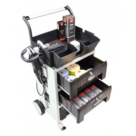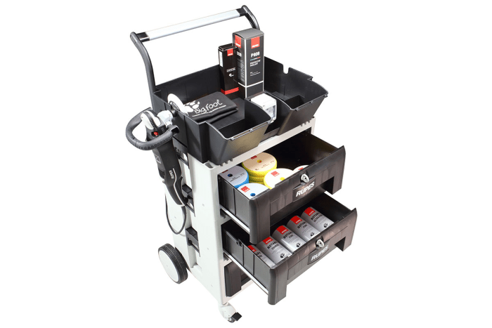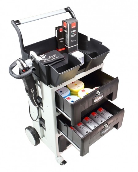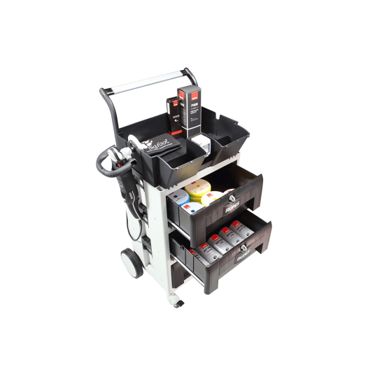 Dzięki dużej ilości miejsca w szufladach wszystkie materiały polerskie Rupes są łatwo dostępne i dobrze chronione przed zanieczyszczeniami i brudem.