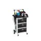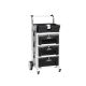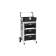 Wózek składa się z trzech modułowych szuflad, górnego modułu do przechowywania przedmiotów z gniazdkiem elektrycznym oraz wygodnego uchwytu ułatwiającego przemieszczanie.