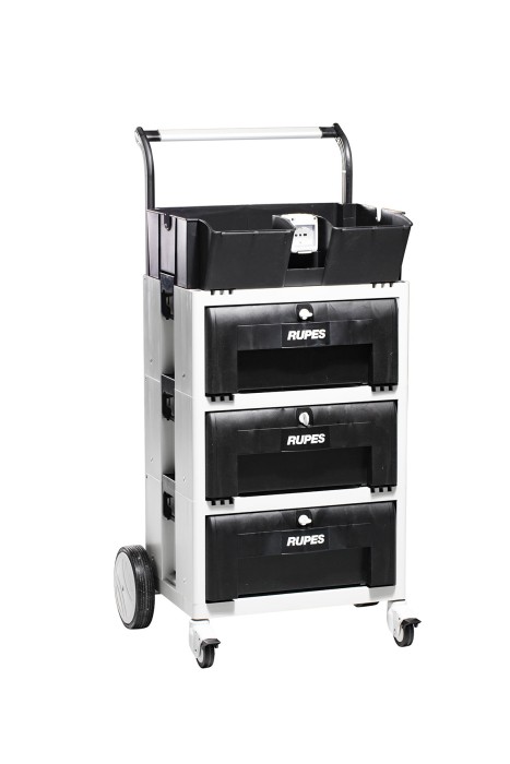 Dzięki dużej ilości miejsca w szufladach wszystkie materiały polerskie Rupes są łatwo dostępne i dobrze chronione przed zanieczyszczeniami i brudem.