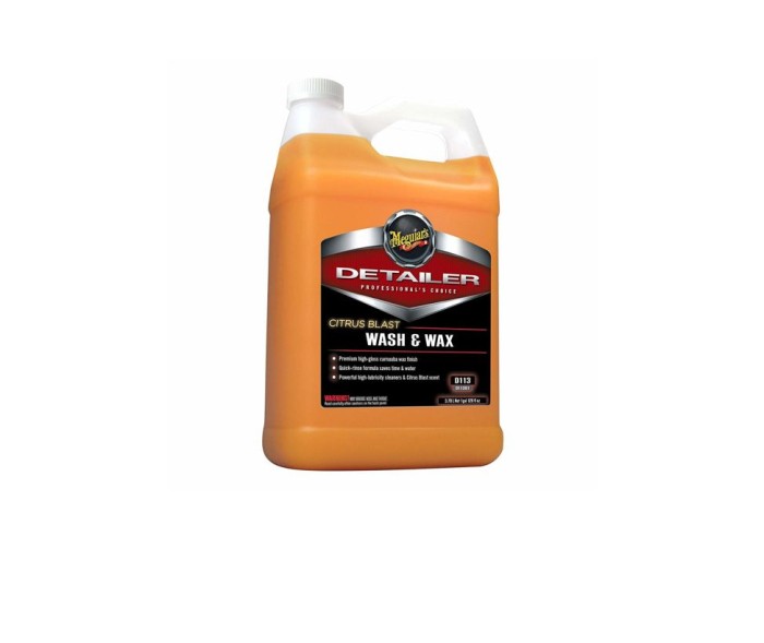 Meguiar’s Citrus Blast Wash & Wax jest idealnym rozwiązaniem dla profesjonalistów szukających szybkiego i efektywnego szamponu z dodatkiem wosku. Stworzony specjalnie do mycia wszystkich powierzchni zewnętrznych auta, oszczędzając przy tym czas i wodę dzięki wyjątkowej formule zwiększającej śliskość oraz mniej mydlącej się formule, która łatwo się spłukuje. Odżywki oraz wosk zwiększają blask i gładkość powierzchni.