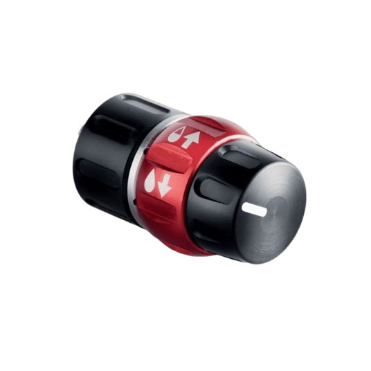 2. Pokrętło regulacji służy do ustawiania żądanej ilości materiału. Pokrętło blokady ustala pozycję QFA na pistolecie. Pokrętło przełącznika reguluje przepływ materiału