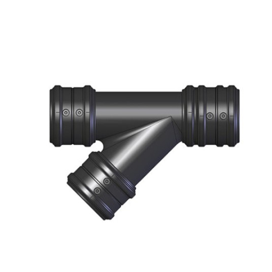 Rozgałęzienie, złączka 3-stronna PE 3 45°, Ø75 - 75 - 75mm do układów odprowadzania pyłu.