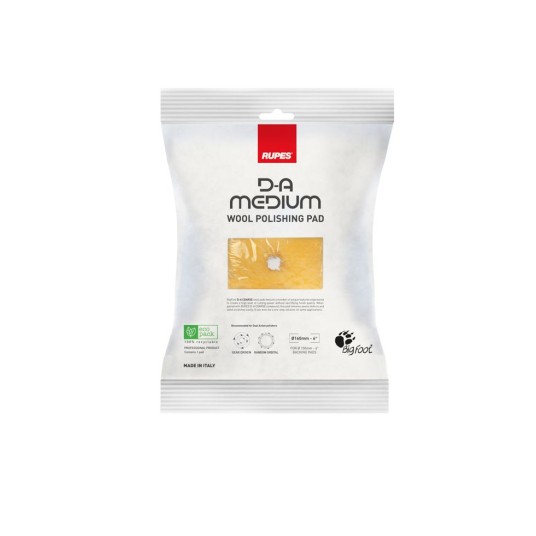 Ponadto nowe podkładki wełniane D-A są pakowane w RUPES ECO PACK, nowe, zrównoważone opakowanie w całości wykonane z odpowiedzialnych źródeł i w 100% nadające się do recyklingu z papierem.