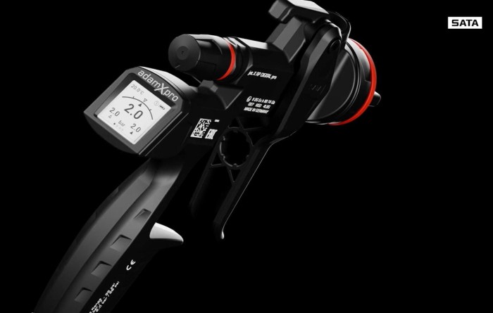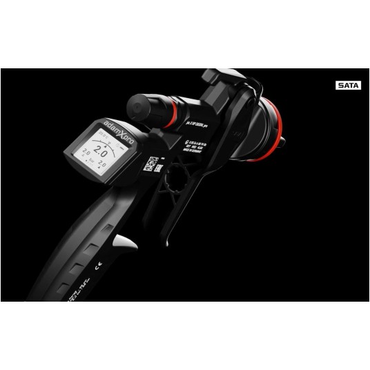 Pistolet SATA JET X DIGITAL PRO ma w zestawie cyfrowy manometr ADAM X PRO, ma też zdejmowany spust