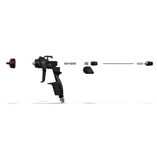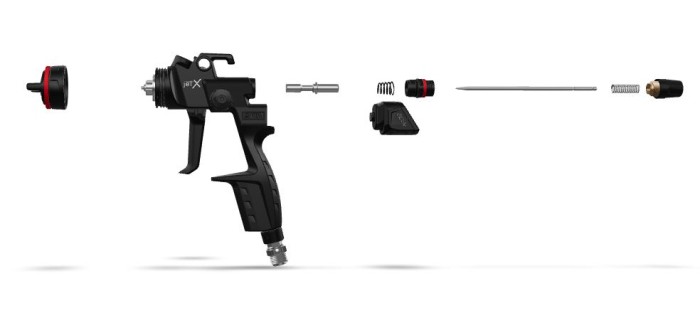 Koncepcja dysz jet X opiera się na innowacyjnym labiryntowym systemie przepływu powietrza. Prowadzi powietrze w dyszy w taki sposób, że opuszcza każdy otwór pod dokładnie tym samym ciśnieniem oraz jest wolne od turbulencji i pulsacji. Dzięki temu możemy osiągnąć wyjątkowo drobną i jednorodną atomizację oraz nowy poziom jakości powierzchni, zarówno w technologii HVLP, jak i RP.