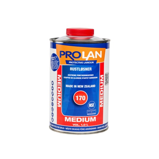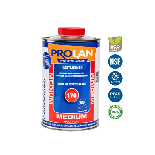 Prolan Medium 170 SPRAY to uniwersalny, wielofunkcyjny smar w sprayu na bazie lanoliny mający właściwości antykorozyjne, dodatkowo wykazujący silne działanie penetrujące. Produkt posiada certyfikat NSF H1 pozwalający do incydentalnego kontaktu z żywnością.