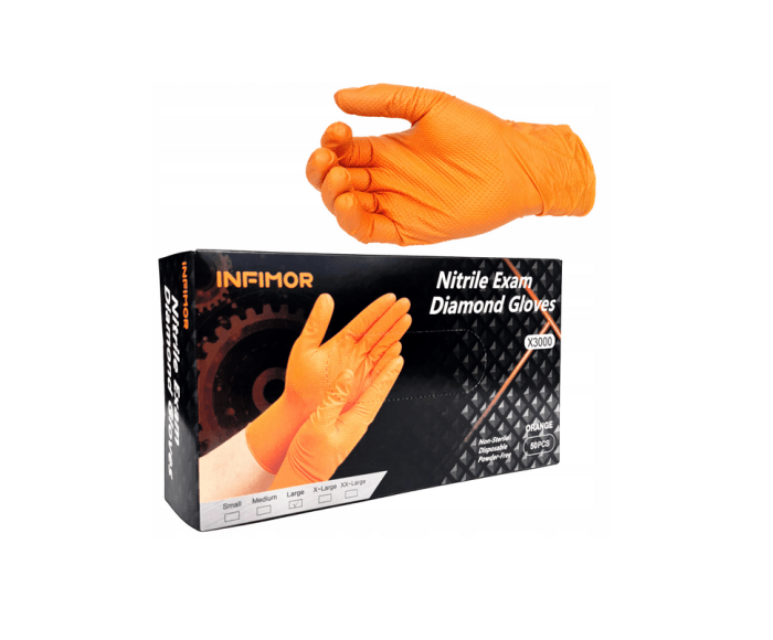 Profesjonalne rękawice nitrylowe jednorazowe z innowacyjną teksturą diamentową dedykowane dla sektorów gdzie prace odbywają się w mokrym i śliskim środowisku.