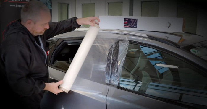 Folia uszczelniająca JTAPE Seal Wrap chroni uszkodzone szyby samochodowe przed czynnikami atmosferycznymi i zapobiega dalszemu rozbiciu się szyby do momentu naprawy.