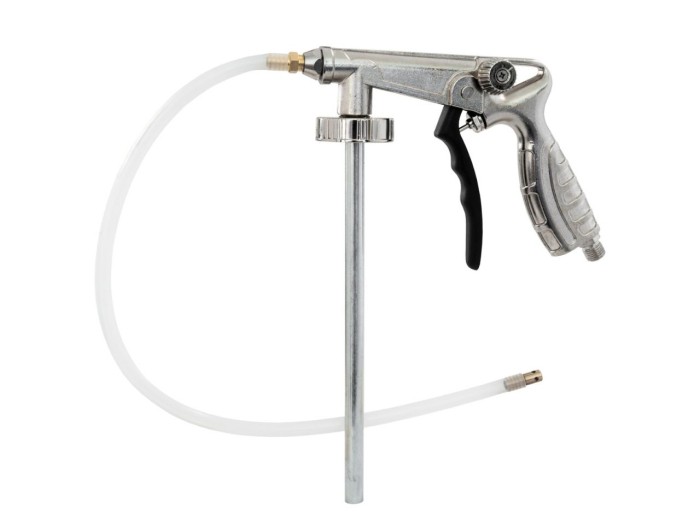 Pistolet do konserwacji, baranków, mas bitumicznych, wyposażony w końcówkę elastyczną do profili zamkniętych