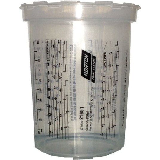 Nadający się do wielokrotnego użycia kubek do mieszania z dwukrotnie wydrukowaną skalą dla większej wygody stosowania.