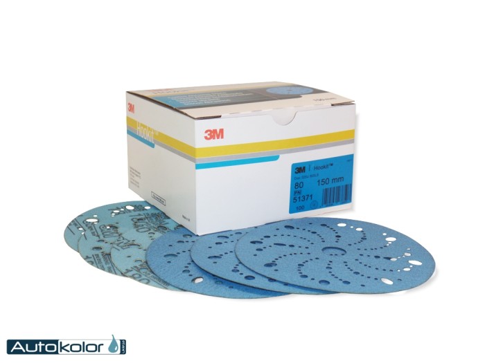 Dysk ścierny 3M™ Hookit™ 325U, 150 mm, niebieski, wielootworowy, 80+, 51371