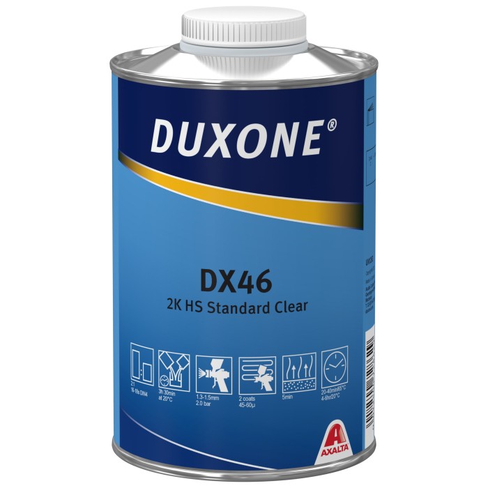 DX46 2K HS Standard Clear stanowi część systemu Duxone do renowacji lakierniczych.